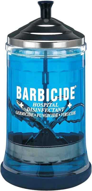 This glass jar is designed for disinfecting any sized implements.