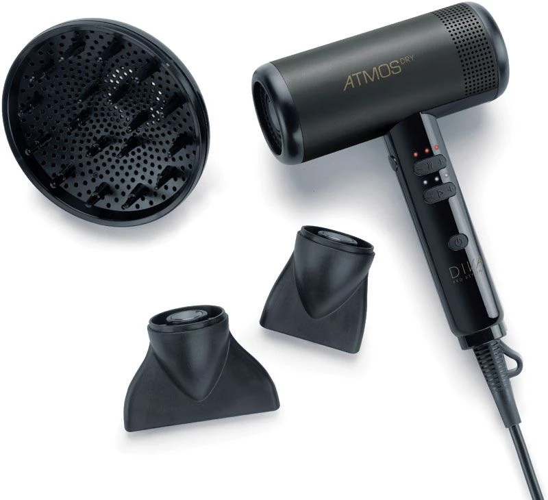 Atmos is a new generation 100,000 RPM hair dryer with a luxury hair conditioning system that speeds up drying time, reduces frizz and increases shine.