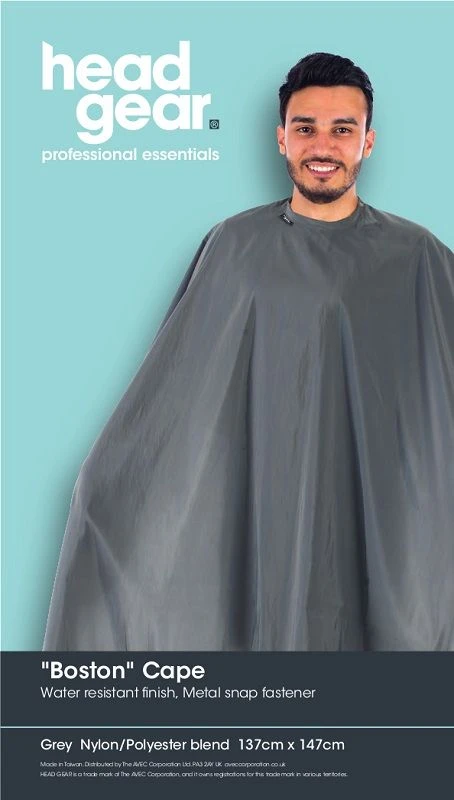 The Head Gear Boston Cape is made from 100% nylon and polyester blend. It’s water resistant and features a metal snap fastener.