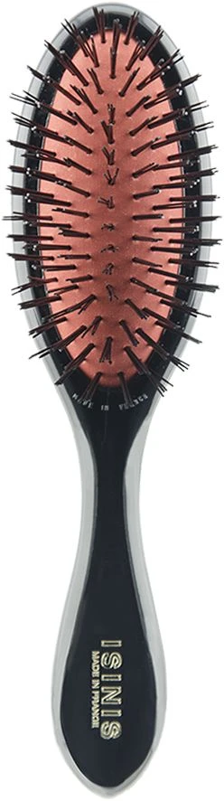 Isinis Pneumatic Handbag Brush is a high quality Handbag size contoured brush with easy grip handle. Pneumatic cushion base with 7 rows of high quality brush which is gentle on the hair with spectacular results.