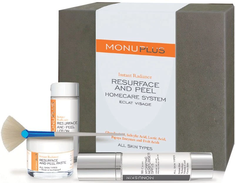 Contents: Hydrating Moisturiser SPF15 50ml, Recovery Balm 15ml, Resurface & Peel Paste 30ml, Resurface & Peel 10% Lotion 30ml and Fan Brush.