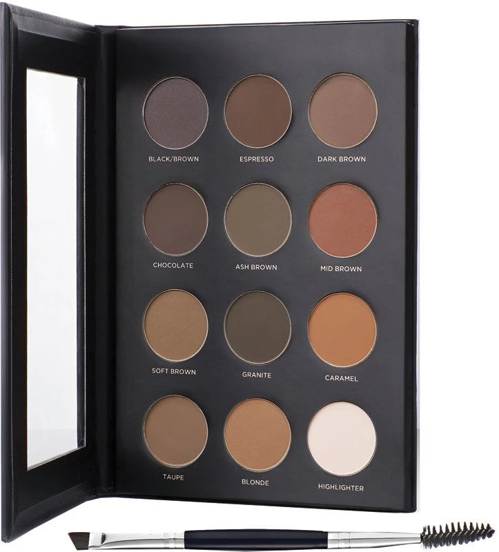 Contents: 11 powder shades, highlighter and double-ended brush.